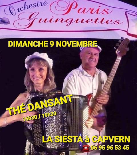 Le duo PARIS GUINGUETTE de retour à LA SIESTA animera le thé dansant de 15h30 à 19h30.