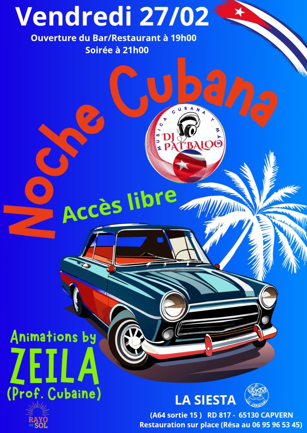 💃 Zeila, professeure de danse cubaine, vous entraîne dans l’ambiance chaleureuse de Cuba 🎧 Pat Baloo, DJ passionné de musique cubaine, aux platines toute la soirée 🍽️ Plat cubain maison à 15€ sur réservation, pour voyager aussi par les saveurs