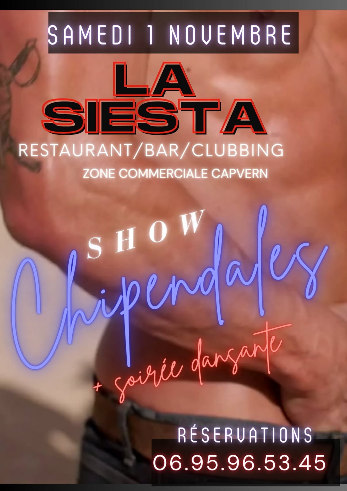 🥰 SOIRÉE CHIPPENDALE & HALLOWEEN PARTY 🎃 👨🎤 Show Chippendales 💋 Stand Pink Moulin Rose pour les filles : 🎶 Animation musicale des années 80 à nos jours avec DJette Fanny 💕 Une soirée 100 % glamour, fun & festive t’attend à La Siesta !