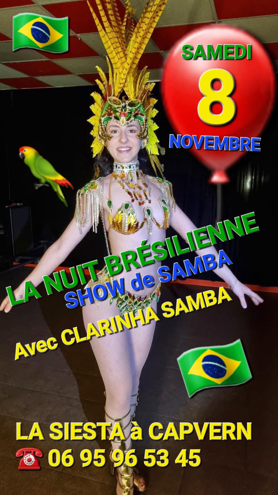 🇧🇷🇧🇷🇧🇷 LA NUIT BRÉSILIENNE 🇧🇷🇧🇷🇧🇷 💃 Show de samba avec Clarinha Samba 🥩 Repas + show + soirée dansante à partir de 15€