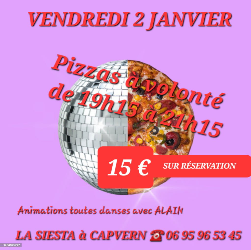 🍕 PIZZAS À VOLONTÉ – 15€ de 19h15 à 21h15 💃🕺 SOIRÉE MULTI-DANSES 🎶 Animée par Alain