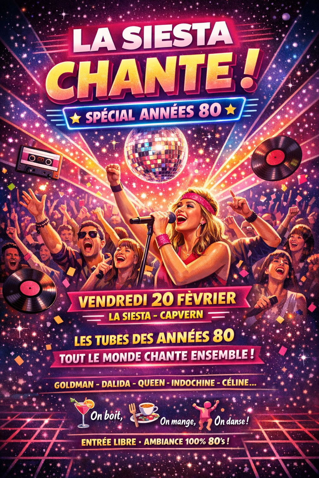 🎤 LA SIESTA CHANTE ! ✨ Sing Along Karaoké + DJ Années 80 👉 On chante tous ensemble… et on danse après ! 🕺🎶