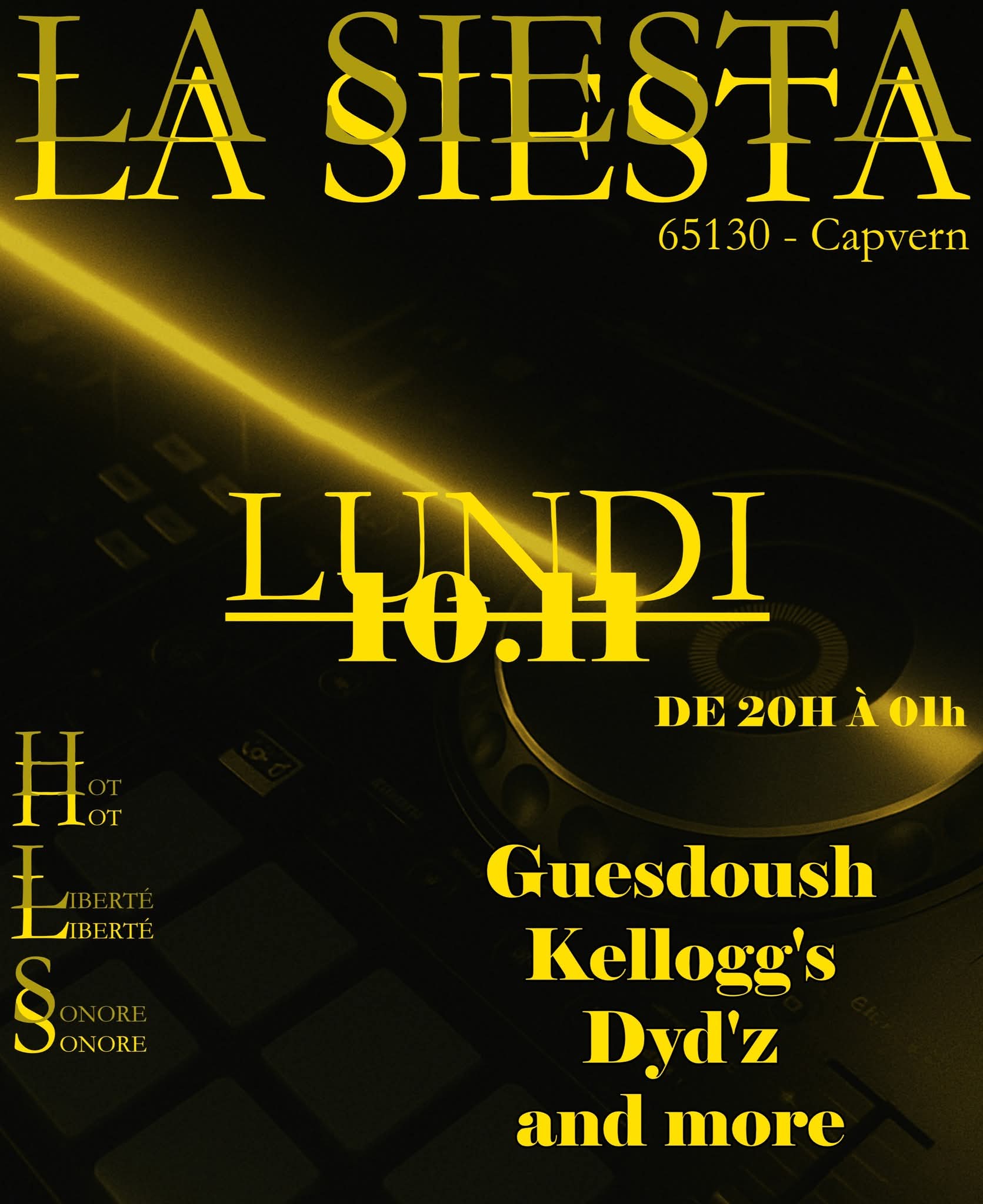 🔥 HOT LIBERTÉ SONORE 🔥 🕒 Heure : 20h-01h 💸 Entrée gratuite Ça faisait un bail… mais HTS est enfin de retour derrière les platines de La Siesta pour une soirée 100% tekno, comme on les aime 💥 Et pas n’importe quand : le lundi 10 novembre, veille de jour férié 😎